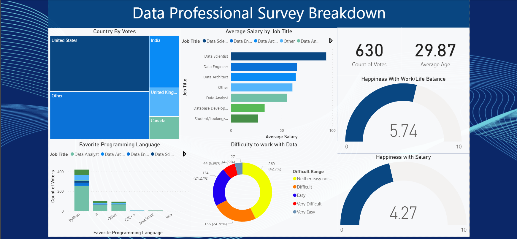 This Power BI dashboard visualizes career choices across various data roles, providing interactive insights and highlighting trends, preferences, and emerging opportunities in the data field.